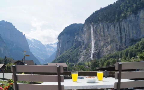 Discover the perfect holiday destination for quiet days for two without children or toddlers: our charming wooden chalet Alpenrösli is located in the tranquil residential area of Stocki. Here you can expect unforgettable moments in a top location with a breathtaking view of the Staubbach Falls, the Silberhorn and the picturesque backdrop of the Lauterbrunnen Valley. In our cosy 2.5 room ground floor flat with idyllic outdoor seating area, you will find everything you need for a relaxing break - including a free parking space for your convenience.In the light-flooded kitchen of our non-smoking flat you can prepare and enjoy your meals in a pleasant atmosphere. It is fully equipped with a 4-ring electric hob, oven, freezer compartment, fridge and other amenities such as a blender, Nespresso machine (capsules for a fee), toaster and kettle. Kitchen linen is included in the first set, and entertainment is provided by a radio with CD/USB player. In the cosy bedroom, the beds have already been lovingly made for your arrival and a spacious wardrobe with hangers is also available. We ask for your understanding that pets are not permitted.Outside, an idyllic seating area invites you to linger and enjoy the breathtaking surroundings. Here you can admire the impressive mountain scenery in peace and quiet and spend relaxing hours outdoors. The location of our accommodation guarantees a peaceful atmosphere, perfect for couples looking for some time out. The owner lives in the same house, but promises complete discretion and privacy.The surrounding area offers a wealth of activities and excursions. From hiking, mountaineering and mountain biking to alpine skiing and cross-country skiing to experiences such as paragliding and rafting, there is something for every adventure seeker. Lauterbrunnen railway station is just a five-minute walk away and offers direct rail connections to popular destinations such as the Jungfraujoch, Schilthorn, Interlaken, Wengen and Mürren. The valley is known for its impressive natural spectacles, from 72 thundering waterfalls to colourful alpine meadows.Don't miss this opportunity to stay in one of the most impressive valleys in the Alps, surrounded by gigantic rock faces and peaks. Our Alpenrösli wooden chalet offers the perfect retreat for couples who want to enjoy the beauty of the Swiss Alps in a private and cosy atmosphere. Book now and experience an unforgettable holiday in Lauterbrunnen.