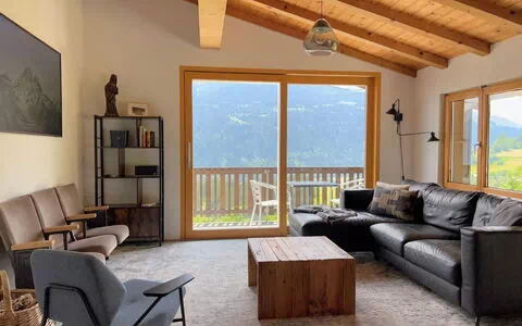 4 of the 5 bedrooms have mountain views - and the only sound you will hear at night may be cowbells. The large, open-plan dining/sitting area invites cosy get-togethers with up to 10 people at one table - or spread out over the room and balcony/terrace.