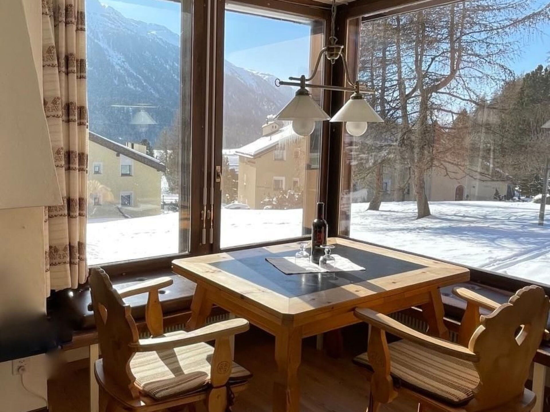Enjoy unforgettable days in our cosy holiday flat in the heart of the Engadine! Our 2.5-room flat, furnished with fine Swiss stone pine furniture, offers you everything you need for a relaxing holiday. Situated within walking distance of the village centre, you benefit from a quiet and very sunny location with a fantastic view of the Engadine mountains. This place promises a unique stay, whether you are looking for peace and quiet or want to plunge into the adventures of nature.Inside the 53 m² flat, you will find an attractive living/dining room with an open-plan kitchen including a dishwasher, a master bedroom with a spacious pine wardrobe and a small room with a practical bunk bed. For your entertainment and comfort, a TV and WLAN connection are available to make your stay as pleasant as possible.The outdoor area is no less inviting. There is a garage space for your car directly opposite the entrance to the house. The mezzanine floor location provides easy access to the flat and you can enjoy the beauty and tranquillity of the surroundings from here.The location of the flat is perfect for everyone - whether you are looking for peace and quiet or want to be active. There are numerous opportunities for sports enthusiasts in the immediate vicinity: the entrance to the famous Engadin marathon cross-country ski trail is just 500 metres away, and the Engadin High Trail is ideal for hikes directly above the village. Lovers of sport and nature will get their money's worth here, with a variety of options such as cross-country skiing, hiking, climbing and many other outdoor activities. Shops, the train station and culinary delights can be found in the village centre, which is just a few minutes away.Our holiday flat in La Punt Chamues-ch is the ideal place for your next holiday. Experience the idyll of the Engadine, be enchanted by the beautiful view and enjoy the cosiness and comfort of our flat. Here you can switch off, unwind and experience the charm of Engadin culture at first hand. We cordially invite you to become part of this wonderful world and look forward to welcoming you as our guests.