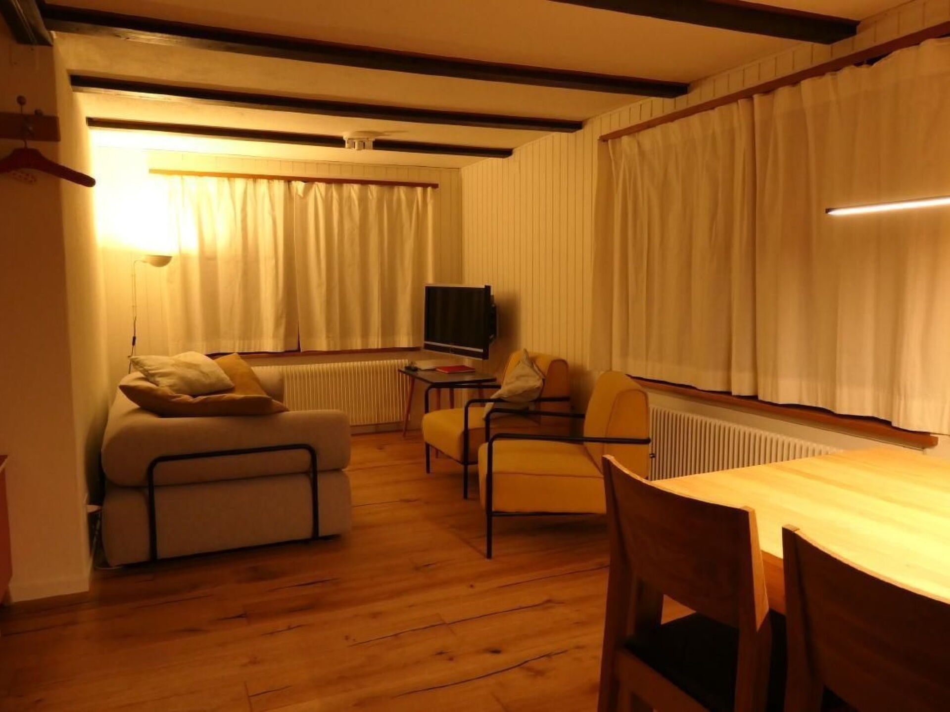 Treat yourself to a well-deserved break in the midst of the marvellous mountain world of Toggenburg.The unique location at 1225 metres above sea level, directly adjacent to the alpine meadow, will also inspire you. The location is sunny all year round with panoramic views over the valley and into the mountains on all sides. Hiking, biking, skiing and sledging trails directly from the front door. It is possible to drive right up to the house. The house can be reached on foot in approx. 12 minutes from the Iltios mountain station. The Espel-Chäserrugg cable car is only a 6-minute walk away.The holiday home is divided into 2 flats and offers excellent privacy away from the noise of everyday life. The flat was last renovated in 2022 to meet current requirements without losing the original charm of the 1970s.The kitchen has been completely remodelled. New with oven, dishwasher and extended work surfaces above various pull-out drawers. All materials were carefully selected, harmonised and professionally processed by regional craftsmen. The floor in the entrance, living and dining area has been fitted with high-quality oak parquet. The dining area is newly furnished with an impressive view of the Alpstein mountains. The new spacious panoramic window invites you to linger or read and, together with the newly designed dining area, creates an exclusive ambience. The bedroom on the ground floor has been fitted with two new built-in beds made of spruce wood. Generous pull-out drawers underneath allow a comfortable access height to the new beds and are very popular with children and their grandparents. USB sockets and reading lamps are a matter of course.The attic room on the upper floor, which was built in 2019, exudes the fresh scent of local spruce wood. Its anteroom, which incorporates individual reclaimed wood elements, forms a cosy lounge with a classic sofa design from Ligne Roset. On the other side of the upper floor is the largest bedroom with two adjoining single beds and a wardrobe with a view of the Churfirsten mountainsIn 2021, a new PV system was installed on the roof, which supplies the house with as much solar energy as possible. The house is supplied with spring water together with the two neighbouring properties further away. In winter, winter maintenance of the access road to the house is guaranteed, but leads over the ski slope and requires appropriate winter equipment.Important information when booking and pricing:-To 2 persons the additional attic room is available as a bedroom and is included in the price. The other bedroom on the upper floor would be closed.-From 3 to 4 persons, the bedroom on the ground floor and first floor is included in the price. If the additional attic room is required, there is a surcharge-From 5 persons, the surcharge for the attic room as a third bedroom is already included and is indicated as over-occupancy in the booking, although the flat is designed for 6 persons.-Family discount: For 5 persons, the attic room can be omitted on express request. In this case, a high-quality folding mattress would be placed in the anteroom on the upper floor, including duvet cover. Please let e-domizil customer service know by telephone which room occupancy you require when booking for 3 or more people.