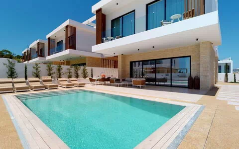 Villa Terpsichori è situata all'interno di un complesso residenziale nel prestigioso Periyiali Konnos Beach Resort, arroccata tra Ayia Napa e Protaras nel cuore del Parco Nazionale di Cape Greco. Questa comunità recintata sicura e controllata elettronicamente vi offre privacy e tranquillità fornendo al contempo accesso a spiagge incontaminate e sentieri panoramici. Come ospite, avrete accesso ai sontuosi servizi del resort, tra cui una spa all'avanguardia, centro fitness, club house, sicurezza 24 ore su 24 e servizi di portineria. La villa offre incantevoli viste laterali sul mare che incapsulano l'essenza di un rifugio sulla spiaggia, con la vista che si estende attraverso il paesaggio marino e lacustre. Il centro città più vicino si trova a 4,0 chilometri dalla proprietà, mentre l'aeroporto è posizionato a 64,0 chilometri di distanza. Si prega di notare che non è consentito grigliare nelle aree esterne e la proprietà mantiene una rigorosa politica di divieto di animali domestici con nessuno ammesso durante il vostro soggiorno. Questa esclusiva fuga costiera rappresenta l'apice della vita mediterranea di lusso, dove il design contemporaneo incontra l'eleganza naturale dell'ambiente circostante, garantendo un'esperienza di vacanza indimenticabile.