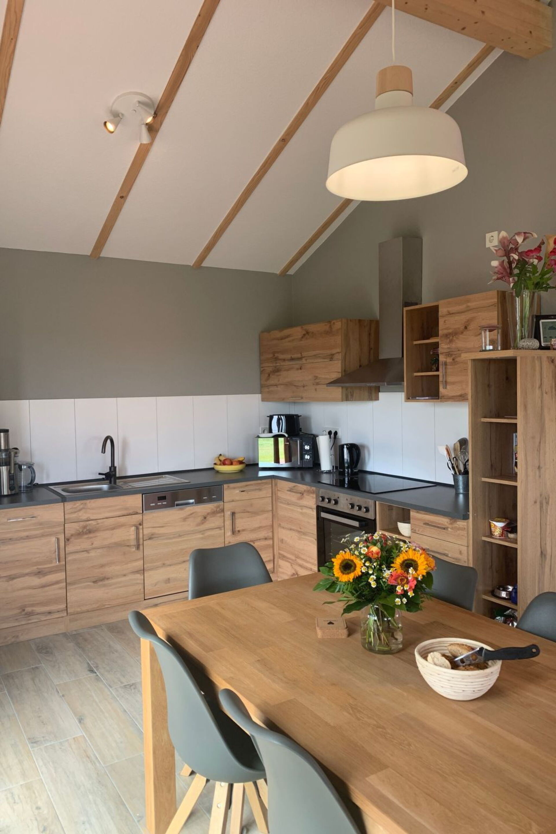 Casa di nuova costruzione G 9 in posizione periferica con vista sulla zona di tutela paesaggistica, completamente recintata, 90 mq di superficie abitabile, prima occupazione 2021, terreno di proprietà di 472 mq, animali domestici ammessi (max. 2), 2 bagni (1x cabina doccia 1,20m x 1,30m e 1x con piatto doccia piatto 90×90 cm), tapparelle elettriche e zanzariere su tutte le finestre, WLAN (fibra ottica 300) gratuita, camere da letto con pavimento in laminato - il resto delle stanze è piastrellato, TV nel soggiorno, enorme ripostiglio di ca. 10 mq sotto il carport, lavatrice. Per 6 persone con 3 camere da letto e 2 bagni completi proprietà di 472 metri quadri