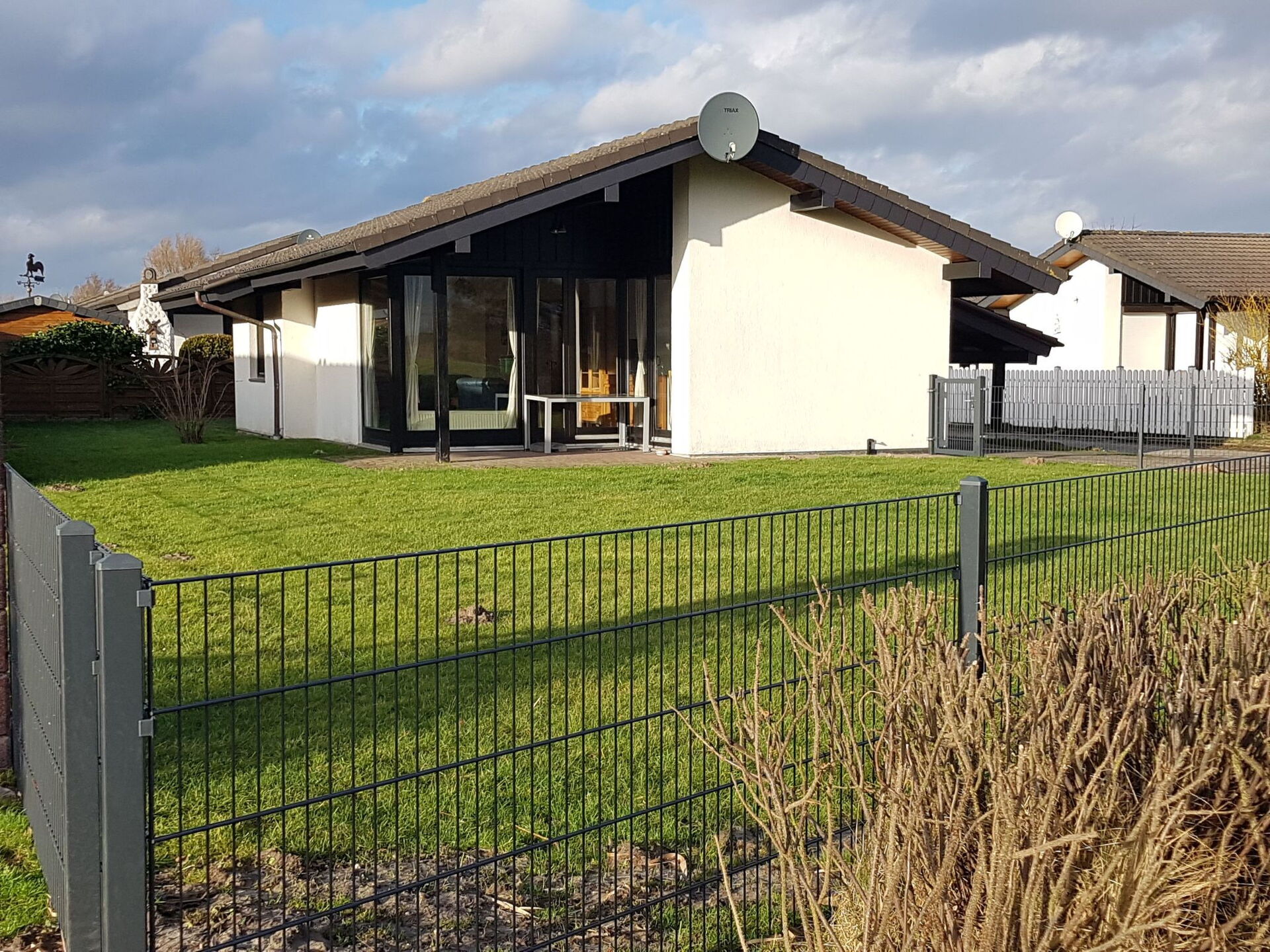 Massimo 2 animali/cani consentiti. Detached, ground-floor bungalow for 5 people, own approx. 350 square metre plot, fenced, new bathroom (2021), washing machine-2 bedrooms: 1 bedroom with double bed 1.80 x 2.00 m, 1 bedroom with 2 x single bed 0.90 x 2.00 m + 1x bunk bed 0.90 x 2.00 m (accessible via ladder)-large living room with 6.5 m floor-to-ceiling windows-covered sun terrace with garden furniture and parasol-Carport and additional parking space at the house-fully equipped fitted kitchen. There is also a separate, lockable storage room.-fly screens on all windows plus fly screen door terraceFree WLAN in the house!The house is located in the holiday village Eckwarderhörne in the immediate vicinity of the dyke, the ferry dock (including passenger / bicycle ferry to Wilhelmshaven) and a 50,000 square metre inland lake belonging to the holiday village (with an approx. 500 square metre sandy lawn directly on the inland lake, swimming pontoon and jetties).The Eckwarderhörne lido with its beach hall, lighthouse, ferry landing stage and starting point for guided mudflat walks is about 800 metres away.In the idyllic holiday village, away from the hustle and bustle of traffic, there is the "To'n Spieker" dyke inn, bicycle hire, children's playground and a 1,000 square metre play area with beach volleyball court, badminton court, basketball hoop, outdoor table tennis table, sandpit and swings.Electricity, gas, final cleaning and water consumption includedVisitor's tax/guest card according to valid statutesExempt are: Severely disabled persons (and 1 accompanying person) with 80% degree of disability as well as the 3rd and each additional child of a family, provided that the guest contribution is paid for the 1st and 2nd child.