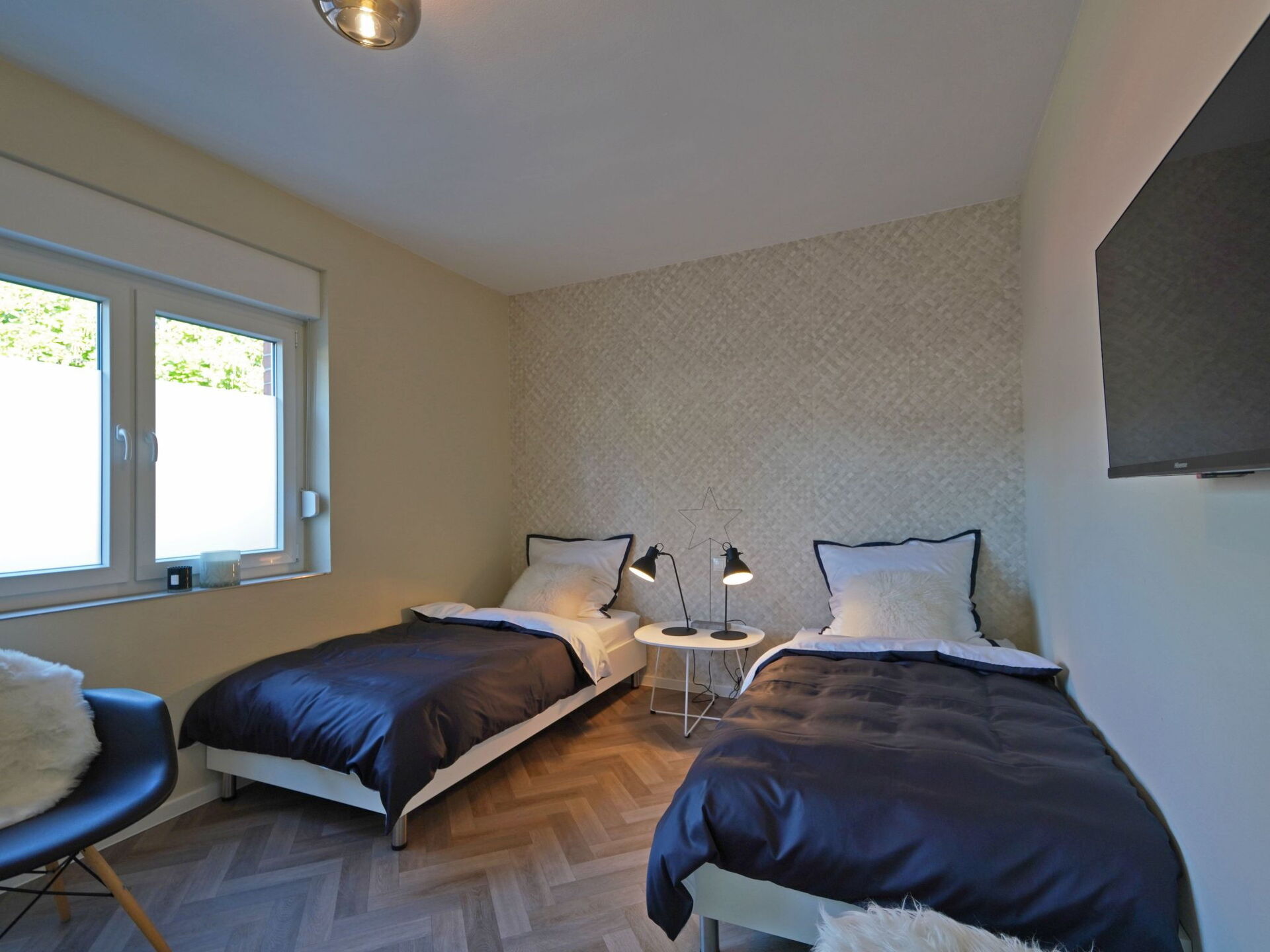 Vi è un ampio corridoio e una confortevole camera da letto con due letti singoli di alta qualità (1 m x 2 m) e armadi a muro.
