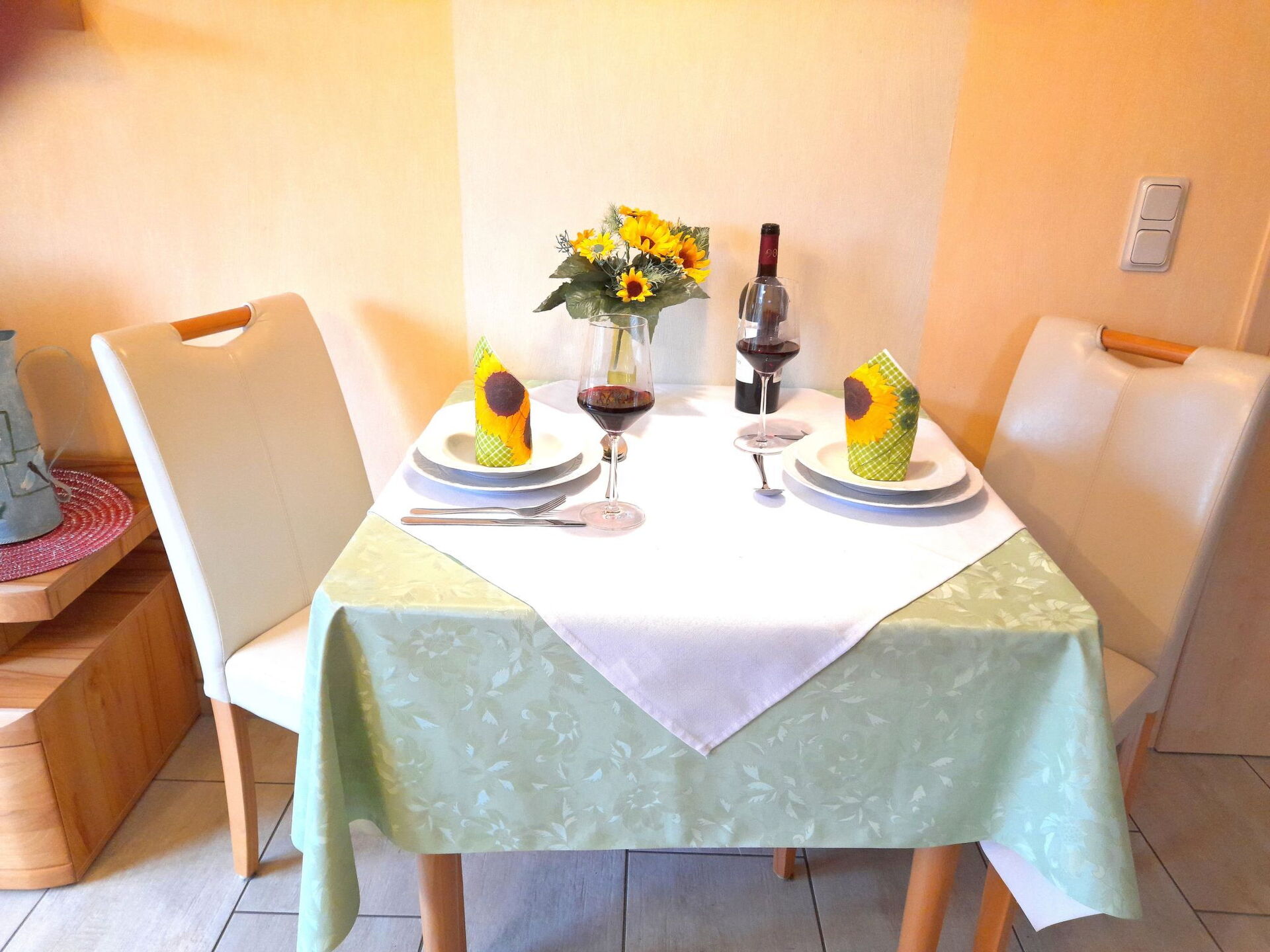Welcome to the idyllic tranquillity of our cosy holiday flat in Daun, the ideal holiday destination for two people. Nestled right on the edge of the forest, this ground-floor flat promises peace and relaxation as well as an environmentally friendly heat supply thanks to underfloor heating and solar technology. A perfect destination for holidaymakers who value comfort and sustainability.Inside, your home will impress you with its high-quality furnishings. The bedroom with windows that can be darkened guarantees a restful night's sleep thanks to comfortable box-spring beds (2x2 m). A fully equipped kitchen with dishwasher, oven and coffee machine leaves nothing to be desired. A washing machine and tumble dryer offer additional comfort for a carefree stay. Relaxation is provided by the Finnish sauna, which is available for exclusive use.The outdoor area with its own terrace invites you to enjoy nature and relaxing mornings. The detached location of the flat on the edge of the forest provides direct access to extensive walks and nature experiences, ideal for unwinding.Despite its quiet location, the flat is close to civilisation. Only 100 metres separate you from the nearest village centre, and grocery shops are also just a short walk of approx. 2000 metres away. For the more active guests, there is a lake and water sports and beach facilities just 4000 metres away. Winter sports enthusiasts will also find their happiness with downhill skiing and cross-country skiing areas just a short distance away.Immerse yourself in the calming atmosphere of our environmentally friendly holiday flat in Daun. Whether you are looking to relax in nature, get active or simply enjoy cosy hours as a couple, you will find the perfect holiday home here. The landlord lives on the property and will be happy to assist you with any requests. We look forward to welcoming you as our guests soon and providing you with an unforgettable holiday. However, pets are not allowed in this flat.