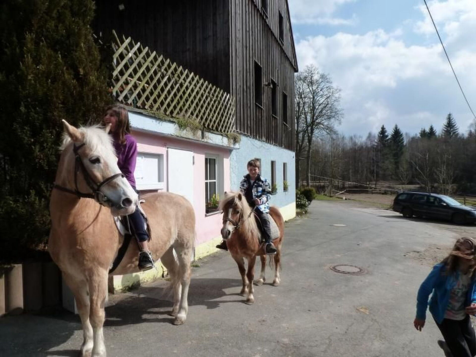 Massimo 3 animali/cani consentiti. The holiday apartment is on the gable side of the riding farm, on the second floor and with a big sunny balcony. From there you can enjoy a beautiful view over the country estate. The hallway with a big sideboard and a mirror provides access to the two bedrooms, the living and dining room and the shower room with a WC. The first bedroom is furnished with a double bed (140 x 200cm) and a generous wardrobe for storing your luggage. The second bedroom has two single beds each measuring 90 x 200cm. The centrepiece of the apartment is the living and dining room with a sofa with a recamiere for relaxing after a day trip. You can sit together for meals at the dining table with four chairs. The well-equipped, integrated built-in kitchen includes an electric stove with four cooking rings and an oven, a fridge, a coffee machine, a toaster and a kettle. The living room opens directly onto the balcony.