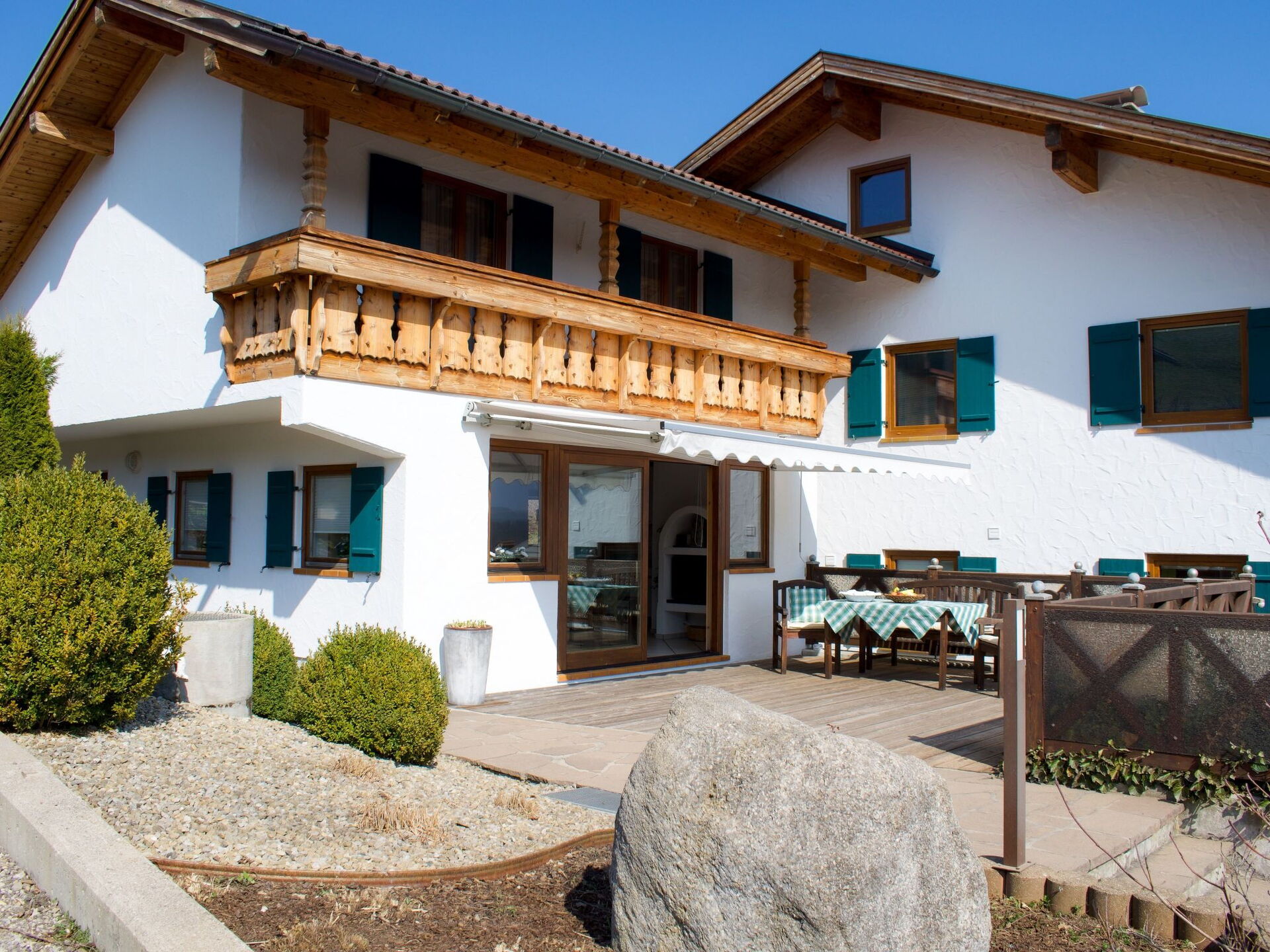 Beautiful holiday home with mountain views, balcony and terrace below the golf course in a top location! The Fischer holiday home in the Allgäu is a separate annex. It has two bedrooms and can accommodate four people. A washing machine is available in one of the two bathrooms.in the kitchen with dining area you will find all the necessary utensils as well as a microwave, coffee machine and toaster for a cosy breakfast.you can enjoy the wonderful mountain view from both the balcony and the terrace with sun loungers.you can golf heavenly at the golf course Auf der Gsteig 200m away and on the golf course Stenz Bernbeuren at Haslacher See 6 km away. The holiday resort of Lechbruck am See offers bathing, swimming, hiking, cycling, sailing and much moreShort descriptionOther : Non-smoking houseShort description 1Number of kitchens : 1Living room 1Other living room furnishings : Rocking chairBedroom 1Other bedroom furnishings : Wardrobe, chest of drawers, bedside cabinets, access to bathroom with WC, balconyBedroom 2Other bedroom furnishings : Wardrobe, bedside cabinets, balconySurroundingsLeisure facilities : Car hire, bike hire, ski, snowboard or sledge hireSports facilities in the area : Basketball, Mountaineering, Football pitch, Ice skating, Golf course, Hunting, Canoeing, Climbing, Mountain biking, Paragliding, Cycling, Rafting, Riding stables (guests), Indoor riding arena, Riding arena / riding possibilities, Tobogganing, Rowing, Sailing, Cross-country skiing, Alpine skiing, Sports centre, Squash, Surfing, Diving, Tennis, Water skiingSurroundings 1Excursion possibilities : Lechbruck's location on the lake in the middle of the gently rolling Alpine foothills within sight of the Alps and its above-average infrastructure give it a special holiday appeal. Almost all sports and leisure facilities are located along the long Lech riverside path: A roller-skating rink, mini-golf and an adventure playground for children are popular excursion destinations. In addition to kayaking, sailing and surfing, the lake also invites you to go on inflatable boat tours. There are plenty of hiking opportunities around Lechbruck, and the beautiful natural surroundings can also be discovered by bike.Location description : The idyllic former rafting village of Lechbruck am See lies in the land of the fairytale castles of King Ludwig IISOther sports and leisure facilities : raft trips, ice hockey, adventure minigolf course, pedalo hireLiving room with dining area on the ground floor with a view of the mountainsExit to the large terraceKitchenette with dishwasher, 4 ring hob, oven, microwave, fridge with freezer compartment, coffee machine for beans and ground coffeeOn the ground floor entrance area with cloakroom, shower with WC here is the washing machineBedroom with double bed 2 x 2 m Exit to furnished balcony, bathroom with WCBedroom with 2 single beds 2 x 1 m Exit to the balconyFurnished large terrace with marquiseSun from the south and west2 car parking spaces in front of the houseBicycle storage in the garagefree WLANnot suitable for children under 12 yearsThe holiday home is located in a quiet residential area on a cul-de-sacbelow the Gsteig golf course with a good restaurantNetto with bakery below the slope approx. 400 m