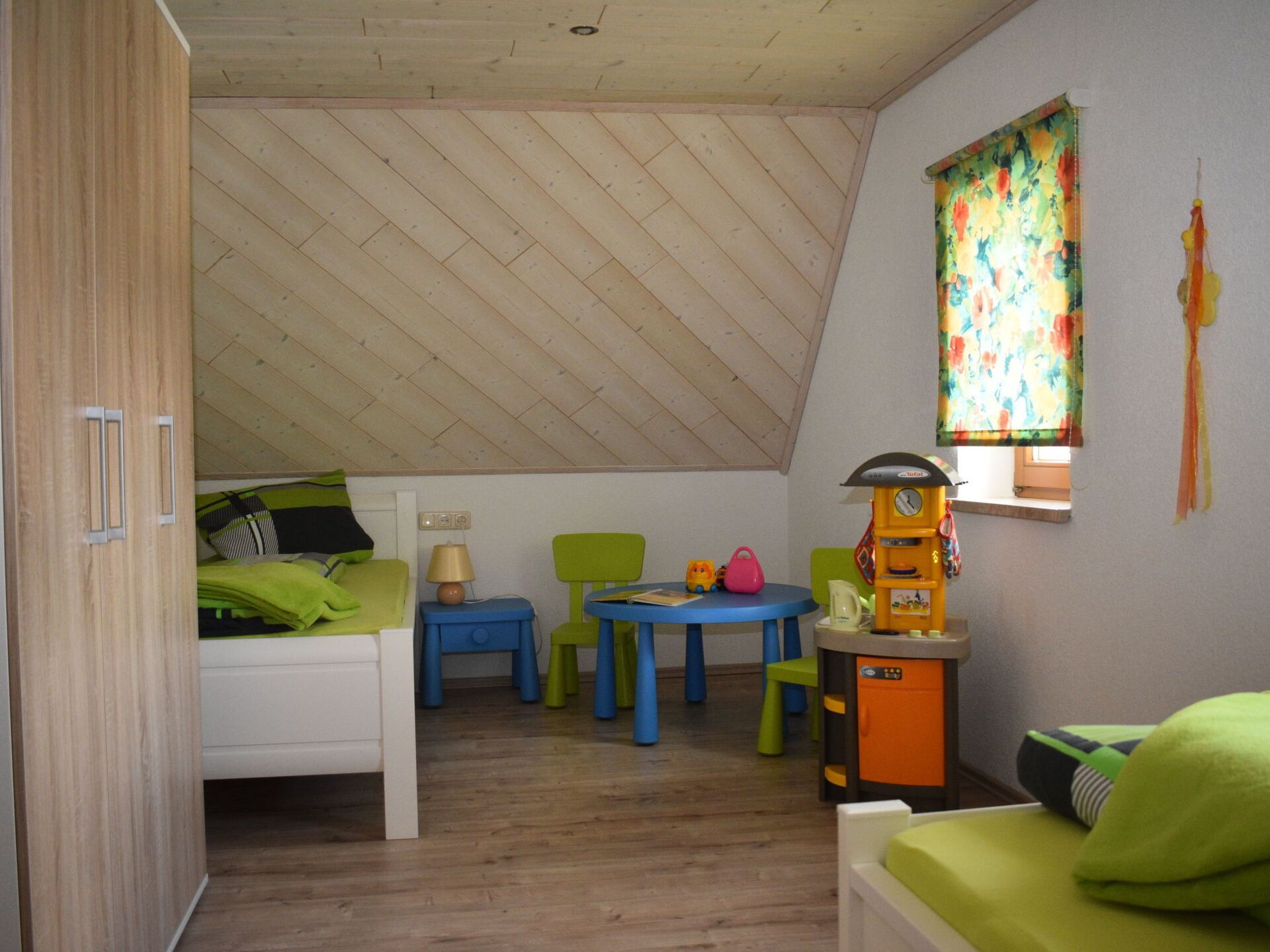Welcome to our family holiday flat, designed with modern comfort and attention to detail to provide you and your family with an unforgettable holiday. This quiet oasis offers two separate bedrooms and is ideal for families who want to spend a relaxing time together.Inside you will find a modern fitted kitchen with coffee machine, dishwasher and kettle, a large bathroom with shower, washer-dryer for your sole use and underfloor heating throughout the flat. The master bedroom is furnished with a cosy double bed, while the children's room has two single beds and a small play corner for the youngest guests. WLAN, bed linen and towels are included to make your stay as comfortable as possible.The outdoor area boasts its own playground with sunbathing lawn and barbecue, as well as garden furniture to spend fun-filled hours outdoors. Here you are surrounded by greenery, woods and nature. The idyllic surroundings with hiking trails starting right outside the door invite you to enjoy a variety of outdoor activities.The holiday flat is on the 1st floor and promises an atmosphere of peace and relaxation. Immerse yourself in a holiday experience that combines relaxation, modern amenities and the beauty of nature. Our non-smoking family holiday flat is the perfect retreat for all those who want to switch off and relax in a well-kept and environmentally conscious environment. We look forward to welcoming you and making your stay as pleasant and memorable as possible.