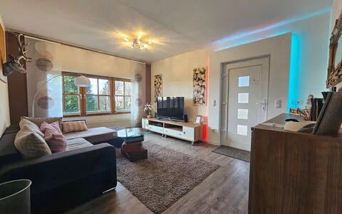 Il vostro appartamento per vacanze è uno spazio di 80 metri quadrati splendidamente arredato nel quartiere Pfaben di Erbendorf, arredato in uno stile moderno di casa di campagna. L'alloggio si trova al piano terra di una casa indipendente, che ha un totale di 2 piani sopra il piano terra ed è stata completamente rinnovata l'ultima volta nel 2020. Questo luminoso alloggio in stile appartamento della nonna presenta un'ampia zona soggiorno aperta con impostazione dimmerabile, una cucina completamente attrezzata con una zona pranzo adiacente che include 1 tavolo da pranzo con posti a sedere per 4 persone, 1 bagno con luce naturale con una grande vasca da bagno che include una doccia, lavandino e WC, e 1 bagno per gli ospiti con lavandino, WC e asciugatrice. L'appartamento include 2 camere da letto, con la camera da letto 2 che offre un letto matrimoniale (da 1,51 m a 1,79 m di larghezza), un lettino per bambini o una culla, e illuminazione dimmerabile, mentre la camera da letto 4 fornisce 2 letti singoli ed è anch'essa dimmerabile. L'area esterna include un giardino separato con una grande terrazza con set di sedute e sedie a sdraio per il vostro uso esclusivo. L'appartamento ospita una capacità massima di 4 persone con 2 camere da letto e 1 bagno. Il proprietario vive nella proprietà e avrete accesso a un totale di 2 posti auto privati all'aperto.