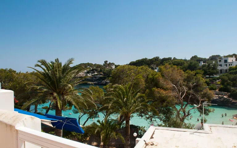 Qui si trovano vie dello shopping, ristoranti, bar, caffetterie e il porto turistico alla moda, che vale la pena visitare. La luminosa zona giorno/pranzo ha accesso diretto al balcone con vista parziale sulla baia sabbiosa e un piccolo tavolo da pranzo. La cucina compatta è attrezzata per le vacanze. L'appartamento dispone di due camere da letto, ciascuna con due letti singoli e accesso al balcone. Una camera da letto ha un bagno con vasca, dove si trova anche la lavatrice, mentre l'altra camera da letto ha un bagno con doccia. La bella e grande piscina comune si trova direttamente sopra la baia sabbiosa di Cala Gran, ideale per rinfrescarsi, prendere il sole e rilassarsi. Da qui parte un sentiero che porta direttamente alla baia sabbiosa.
