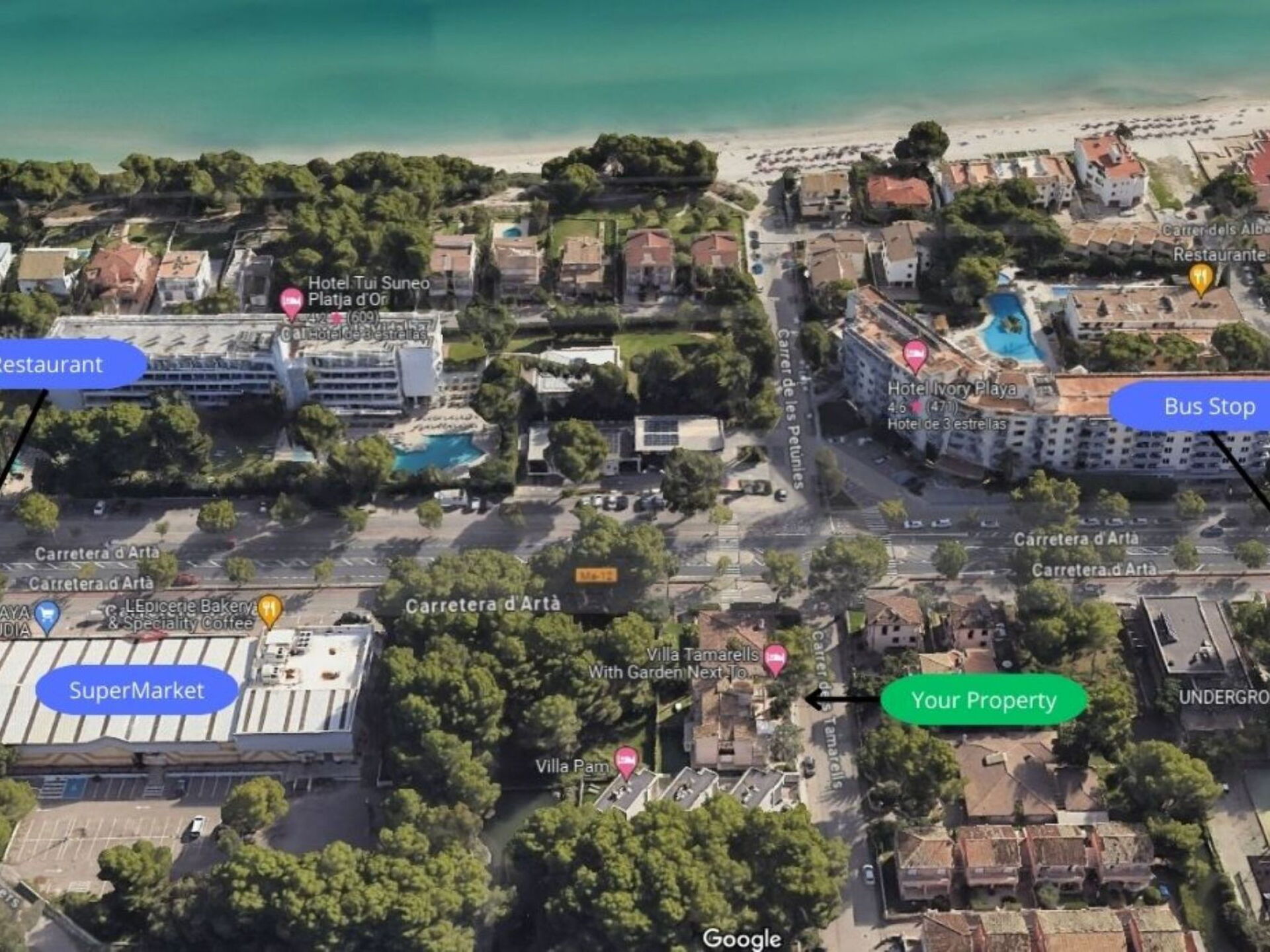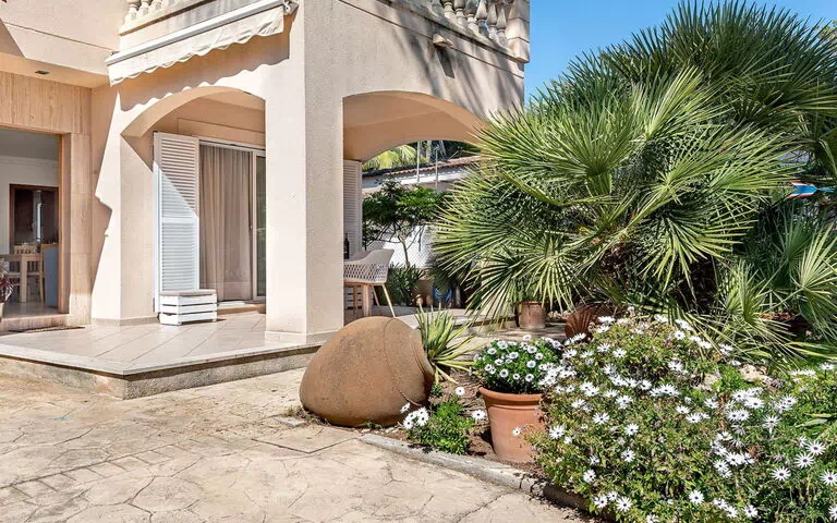 Come and enjoy your holidays in this beautiful villa, just 150m from the most beautiful beach in Puerto de Alcudia.Greeted by a beautiful entrance that will guide us through arranged plants and vases into a spacious and bright living room with large windows and peculiar marine-themed decorations. A lovely green garden with a barbecue will also accompany you to relish unforgettable evenings or relax on one of the sun loungers under the scorching sun.Experience the perfect mix of fun and relaxation in this spacious two-floor villa, surrounded by nature and just steps from the sea.✦ GROUND FLOOR ✦This floor is made for socializing. Relax in the bright living and dining area, which has air conditioning for your comfort. The fully equipped kitchen is ready for your culinary creations. Step outside to enjoy a lovely backyard, a terrace, and a garden with charming plants. A bathroom with a shower is also on this level.✦ UPPER FLOOR ✦This floor is all about rest and tranquility. It has three cozy bedrooms—two with private terraces where you can enjoy peaceful moments outdoors. Please note that the bedrooms do not have air conditioning. There is also a full bathroom with a bathtub, ideal for unwinding after a day of exploring. ESFCTU00000704300030131200000000000000000000ETV/4
