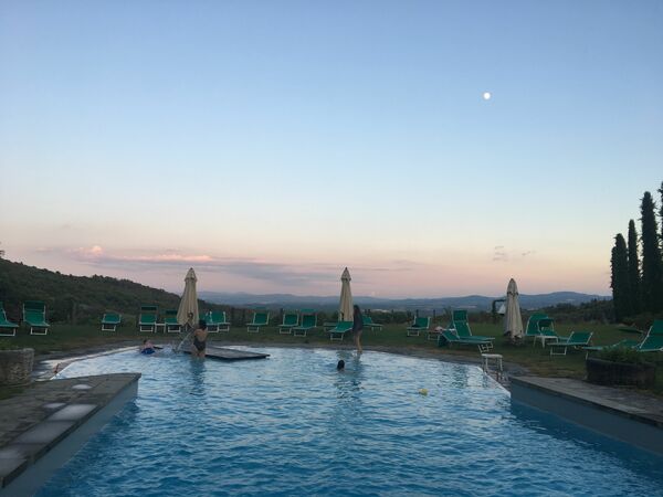 The pool was a little outdated (some loose tiles) and quite a steep climb. But nice sunbeds and fantastic views. Large umbrellas. Also nice that there was a table tennis and football. We enjoyed the delicious traditional meal together with the other 43 guests. Andrea is a fanastische host. We took some wine and olive oil from the estate back home. Warm soothing atmosphere. Excellent washing machine in the house available. WIFI at the reception free of charge. A little remote (about 3 km from the Chianti Road). To get fresh bread you will drive 8 km (and back). From Figline within half houryou can reach Florence by express train (recommended). We enjoyed the beautiful surroundings. Fam. Ter Borg and Steur from Paterswolde (4 teenagers).Raccomanderesti la Proprietà ad un amico? Si