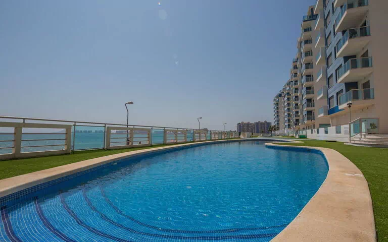 La Manga del Mar Menor: Condominio "Euromarina Towers", costruito nel 2007. In periferia, a 4.5 km dal centro di La Manga, posizione soleggiata, a 50 m dal mare. In comune: 2 piscine (disponibilità stagionale: 01.Gen. - 31.Dic.). Piscina per bambini, doccia esterna. Nella casa: ascensore. Autosilo pubblico a 50 m. Negozio alimentare 200 m, ristorante, fermata bus, spiaggia sabbiosa 100 m. Maneggio 20 km.