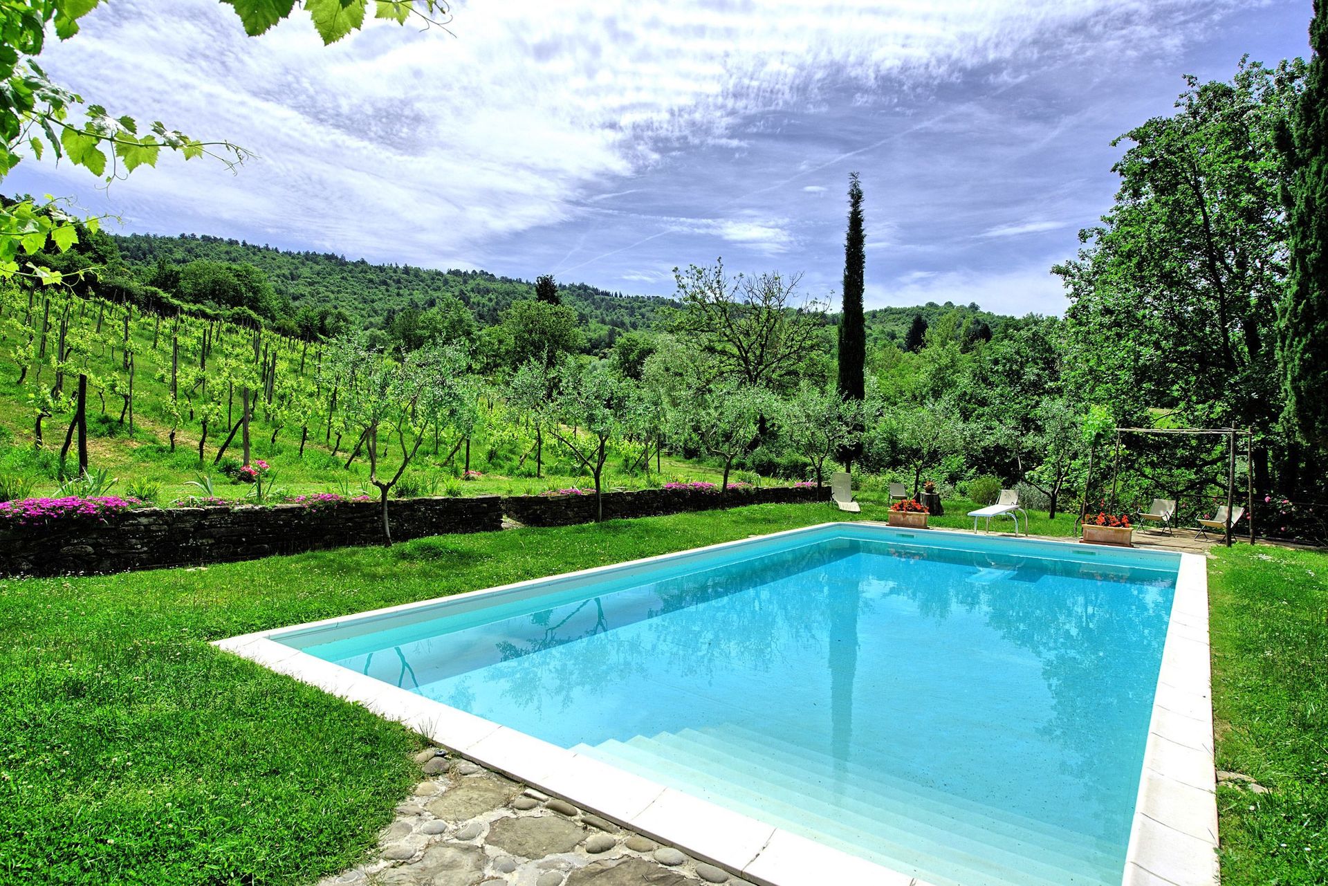 Confortevole e grande casa indipendente con piscina privata situata nelle colline intorno ad Arezzo. Vicino al paese, la posizione della casa è tranquilla, panoramica, comoda e permette ai suoi ospiti di trascorrere una piacevole vacanza a contatto con la natura. Gli interni sono arredati in stile rustico. Intorno alla villa è presente un grande giardino attrezzato con piscina riservata all’uso esclusivo degli ospiti. Un terreno di 7 ettari coltivato a seminativo e a vigneto produce un buon vino che gli ospiti possono acquistare direttamente sul posto. La famosa città di Arezzo dista solo 10 km e dalla stazione ferroviaria della città è possibile raggiungere comodamente in treno Roma e Firenze. Il vicino paese di Subbiano è raggiungibile anche a piedi.