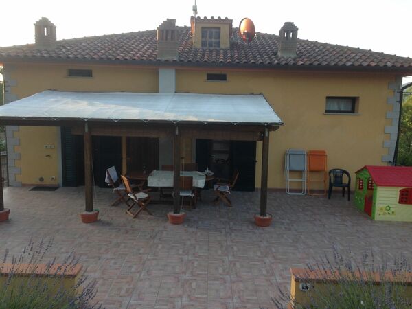 Il vecchio casolare ristrutturato ospita a piano terra alcuni locali usati saltuariamente dai proprietari e i due appartamenti per gli ospiti al piano superiore. Tramite una scala esterna in pietra avrete accesso ad un terrazzo solarium privato arredato con tavolo e sedie per mangiare all'aperto. Dal terrazzo potrete accedere sia agli appartamenti che, salendo qualche gradino, alla bella piscina (dimensioni m. 10x5, prof. m. 1-1,40 - aperta dal 11 Maggio al 28 Settembre), privata e attrezzata con lettini e ombrelloni. E’ nel terrazzo che trascorrete le vostre giornate al casolare. Al sole o al riparo sotto gli ombrelloni, con il fresco del mattino o alla brezza delle sere d’estate. La proprietà accetta animali di piccola taglia.