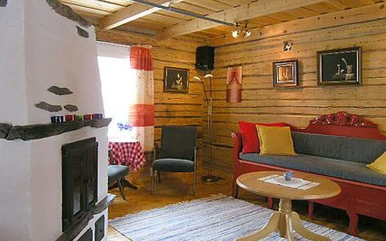 Log cottage reconstructed from old logs in 1987, large living room 1 extra bed, cooking corner. Upstairs: sleeping loft 4 beds, washroom, WC, no sauna in cottage. Sauna available in the owner's house. Delightful small cottage with plenty of ambience in a village setting among lakes. Nearest neighbour is owner’s house, 30 m away.
