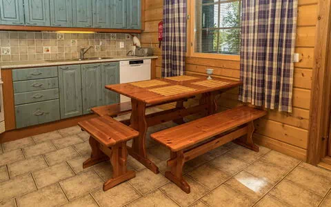 25 km a nord di Kuusamo, Vuosseli (Ruka orientale) 1,1 km. Appartamento di alto livello in una casa bifamiliare costruita in tronchi, costruita nel 2004, camera da letto al piano inferiore 1: letto matrimoniale, camera 2: 2 letti, camere da letto al piano superiore 3-4: 2 letti, sala: divano letto per due, scale gentili al piano superiore, cucina / soggiorno combinati, sauna elettrica. Casolare e appartamento per vacanze sulla strada Kinoskuja. Sciovia più vicina Masto, il ristorante più vicino RoySki Pub. Equipaggiamento supplementare: asciugacapelli, frullatore. Altre distanze: Oulanka National Park / Pieni Karhunkierros Sentiero 28 km.