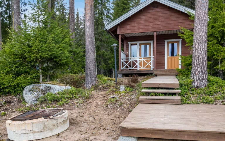 90 km a nord-ovest di Tampere, L.Metsäjärvi 30 m (lunghezza 1,3 km, larghezza 150 m), fondo poco profondo e sabbioso, barca propria. Casetta in legno del 2008, soggiorno/cucina, 2 camere da letto entrambe con 2 letti, nel soppalco 6 divani letto, sauna (fornello elettrico), bagno (2 docce), spogliatoio/ripostiglio, ingresso e terrazza aperta. Sauna separata sul lago (12 m²), con spogliatoio, sauna e terrazza all'aperto. La sauna sul lago è dotata di riscaldamento elettrico, illuminazione elettrica e tubo dell'acqua fredda (serbatoio dell'acqua riscaldato a legna). Sauna disponibile anche in inverno. Porto auto. Puoi noleggiare la vasca idromassaggio dal proprietario, prezzo 160€ / 1-2 giorni. Il proprietario riempie la vasca idromassaggio, il riscaldamento e lo svuotamento della vasca idromassaggio da parte del cliente. Il riscaldamento della vasca idromassaggio può essere concordato anche in anticipo con il personale di servizio a un costo aggiuntivo. Si prega di verificare in anticipo la disponibilità della vasca idromassaggio (viene affittata per due cottage). Nella cabina è presente una pompa di calore ad aria con funzionalità di raffreddamento e riscaldamento. Confortevole casetta di tronchi sulla riva del tranquillo lago della foresta. La trama ha anche una sauna separata sul lago e un posto auto coperto. Adatto a famiglie numerose o ad es. due coppie. L'area del cortile è pianeggiante e luminosa. Helsinki 265 km, Tampere 90 km, Parkano 25 km, aeroporto 95 km, stazione ferroviaria 30 km, pista da sci alpino Jämi (1 pista) e tunnel sciistico 26 km, campo da golf 35 km.