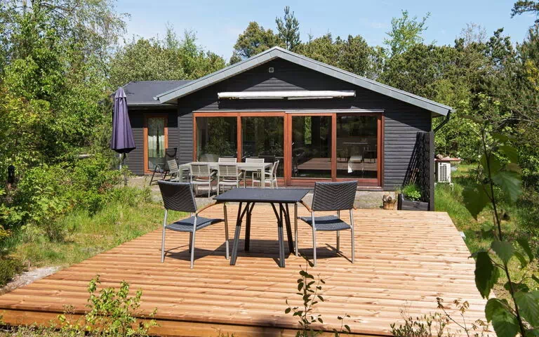 Nella foresta, a circa 5 minuti a piedi da Hemmet Strand sul fiordo di Ringkøbing, si trova questa casa per le vacanze con idromassaggio e sauna. I numerosi alberi sulla trama naturale offrono un'atmosfera molto speciale e scoiattoli e lepri sono spesso ospiti sulla trama. La casa e il terrazzo sono appartati, al riparo dagli alberi. La foresta, insieme all'idromassaggio e alla sauna, aiuta a liberarsi dallo stress quotidiano. La sauna è una sauna finlandese speciale che viene riscaldata con stufa a legna. Il soggiorno ha una finestra panoramica di fronte al bosco e PlayStation2. Thre è un trampolino (utilizzo a proprio rischio / assicurazione), altalene e barbecue. Nessun permesso ai gruppi giovanili. 1 soggiorno: stufa a legna, radio, lettore CD, lettore DVD, connessione internet wireless gratuita, TV, antenna parabolica 2 camere da letto: (1 letto doppio) + (1 letto singolo + 2 letti) 1 allegato: (2 letti espandibili) angolo cottura: piastre elettriche, forno, frigo-congelatore, forno a microonde, cappa aspirante, caffettiera, lavastoviglie Bagno / WC: lavatrice, WC, lavabo, cabina doccia, sauna Bagno / WC: lavabo attività: console di gioco e: Terrazza, idromassaggio, riscaldamento elettrico, pompa di calore aria-aria, giochi per bambini, terreno naturale con alberi 1600 m2, arredamento di base, casa vacanze, casa per non fumatori.