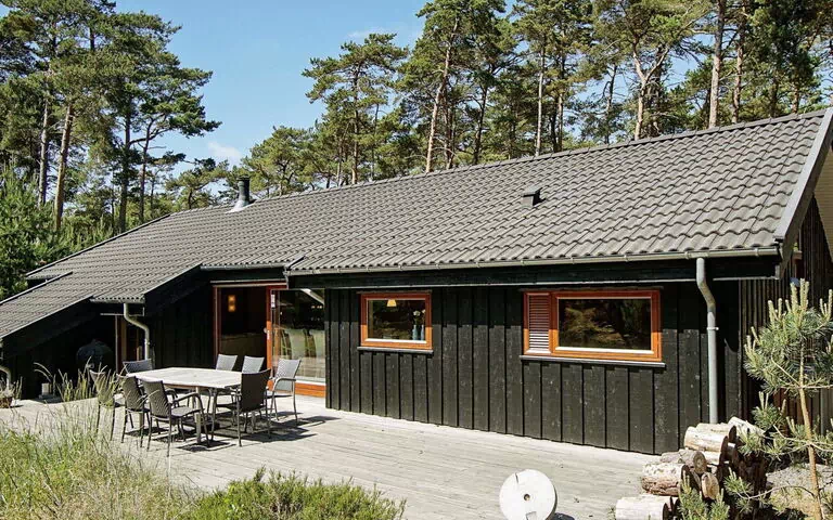 Casa vacanza completamente isolata con idromassaggio. Il casolare è del 2006 ed è situato su un terreno naturale isolato, ondulato, non lontano dalla bianca e sabbiosa spiaggia di sabbia di Dueodde con le sue bellissime dune. Il casolare è stato progettato da un architetto. È esclusivo, moderno, in stile scandinavo con soffitto con travi a vista. Arredamento scandinavo di buon gusto - legno e pavimenti piastrellati. Stufa a legna accogliente per periodi freddi. Dal soggiorno si accede ad una terrazza in legno che circonda tutto il casolare - ideale per prendere il sole durante il giorno e per un pasto alla griglia durante la sera. A pochi metri dalla casa ci sono mini golf, campi da tennis, noleggio biciclette, centro balneare pubblico e ristoranti. Ci sono circa 3 km dal campo da golf a 18 buche più vicino. La sera visita Snogebæk, il piccolo borgo di pescatori. Qui troverete molti ristoranti affascinanti, negozi e un affumicatoio. È inoltre possibile acquistare pesce fresco dai pescherecci nel porto. 1 soggiorno: 42 mq, stufa a legna, stereo con lettore CD, Internet + (download di almeno 50 Mbit), TV, antenna parabolica, seggiolone 4 camere da letto: (1 letto doppio) + (1 letto doppio) + (1 letto doppio) + (2 letti singoli), lettino 1 alcova nel soggiorno: (1 letto espandibile) angolo cottura: cucina elettrica, frigorifero e freezer, forno a microonde, cappa aspirante, caffettiera, lavastoviglie, lavatrice, asciugatrice Bagno / WC: WC, lavandino, box doccia, riscaldamento a pavimento, sauna Bagno / WC: WC, lavandino, box doccia, riscaldamento a pavimento attività: console di gioco e: Terrazza, terrazza coperta, whirlpool, riscaldamento elettrico, barbecue, terreno naturale con alberi 2655 m2, arredamento moderno, casa per le vacanze, casa per non fumatori.
