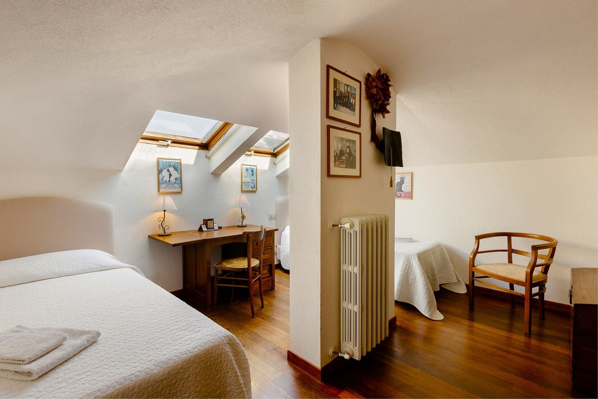 MANSARDA: (altezza 1,20 m. - 1,80 m.) con accesso da scala interna in legno camera con due letti singoli, camera singola, bagno con doccia.