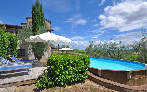Casa indipendente con piscina privata situata nel Chianti Classico in un antico borgo di case, circondata da vigneti, oliveti e boschi. Il paese di Gaiole in Chianti dista solo 10 km e gli altri paesi del Chianti Classico (Radda, Castellina, Greve ecc…) sono facilmente raggiungibili in auto. La casa è confortevole, si sviluppa su due livelli (collegati anche internamente tramite una scala a chiocciola) ed offre agli ospiti uno spazioso giardino molto curato con piscina (parzialmente fuori terra).