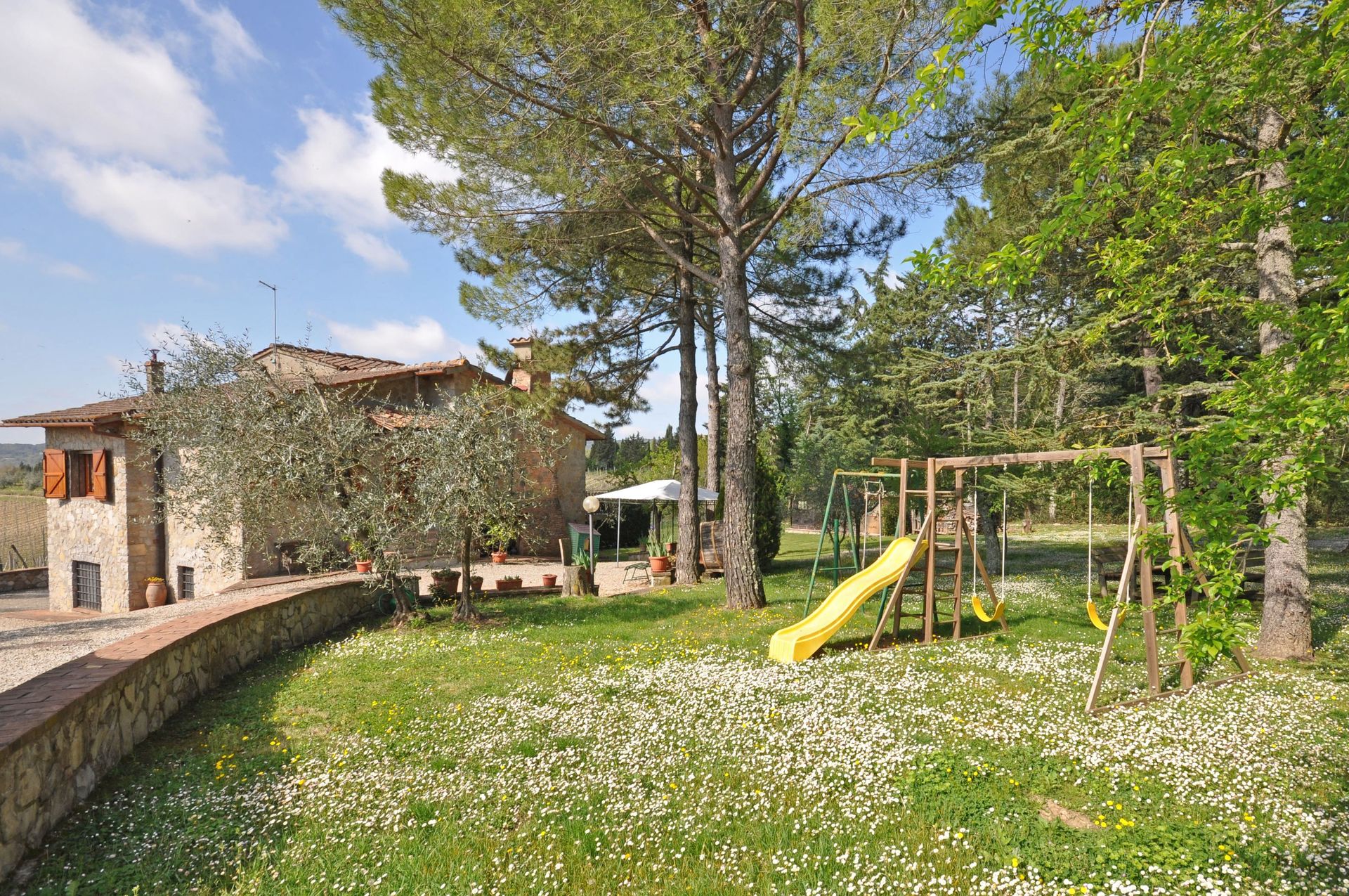 Distanze: il piccolo paese di San Sano con negozio di alimentari e ristorante a circa 500 metri, Gaiole in Chianti con negozi di ogni genere a 10 km, Siena a 25 km, Rapolano Terme (rinomato centro termale) a 35 km, San Gimignano a 55 km, Volterra a 65km, Firenze a 65 km, Montalcino a 65 km, Arezzo a 70 km, Montepulciano a 70km, Pienza a 75 km.