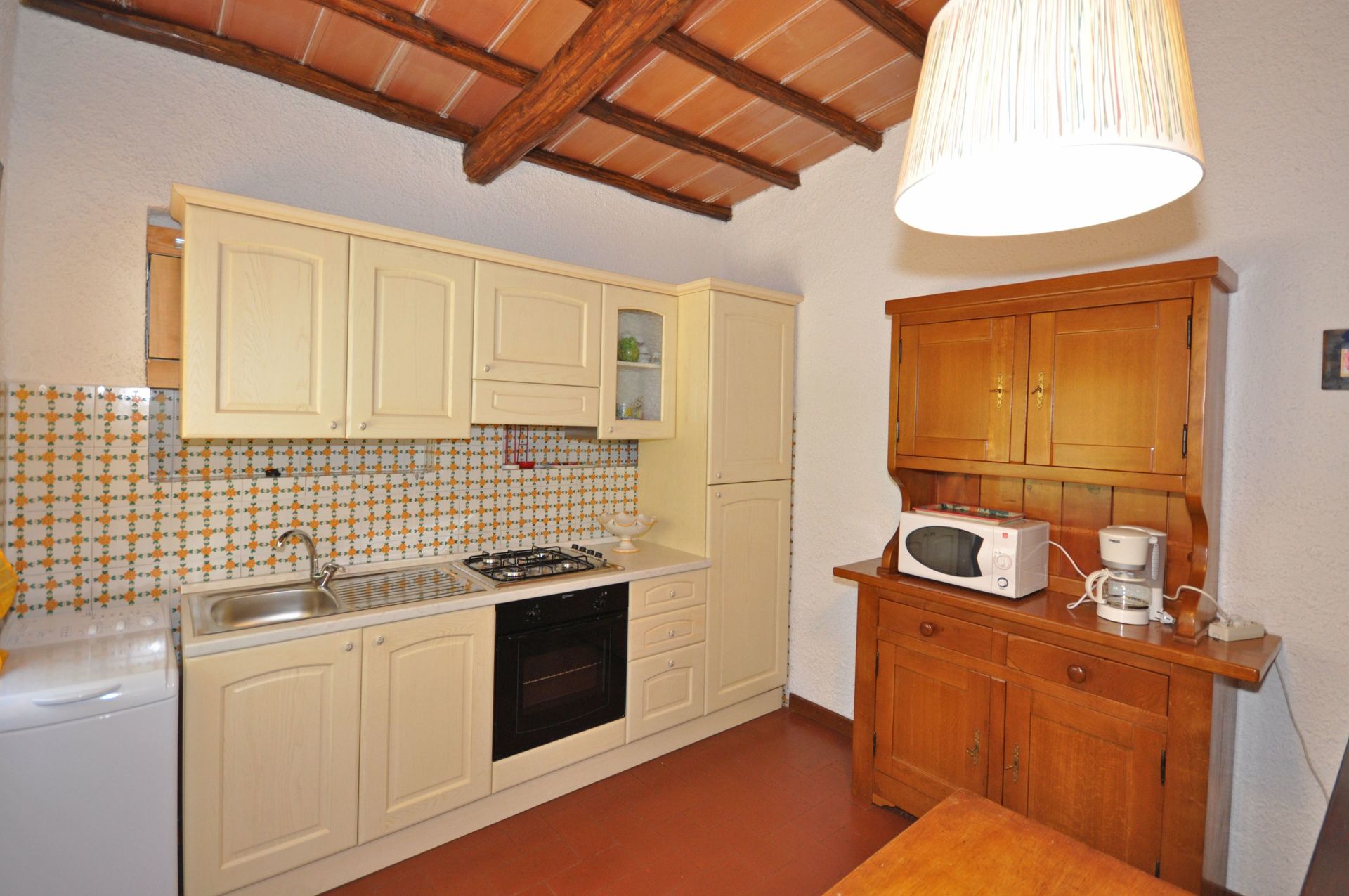 Piano terreno (accessibile sia dall'interno tramite una scala a chiocciola sia dall'esterno): soggiorno con divano letto matrimoniale e angolo cottura (forno), camera matrimoniale (aria condizionata), bagno con doccia, ripostiglio con lavatrice.