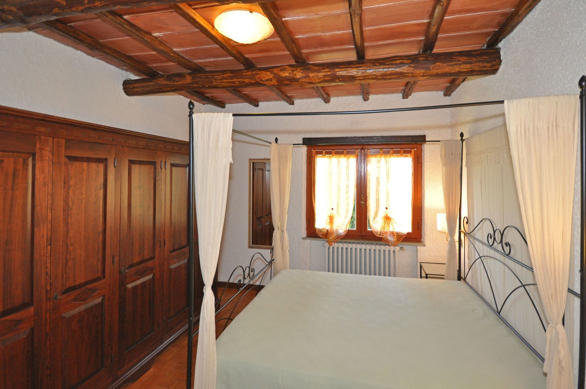 Piano terreno rialzato: soggiorno con camino e zona pranzo, angolo cottura (lavatrice, forno, freezer, microonde, macchina da caffè americano), camera con letto matrimoniale a baldacchino (aria condizionata), bagno con doccia, camera matrimoniale (aria condizionata) con bagno privato con doccia.