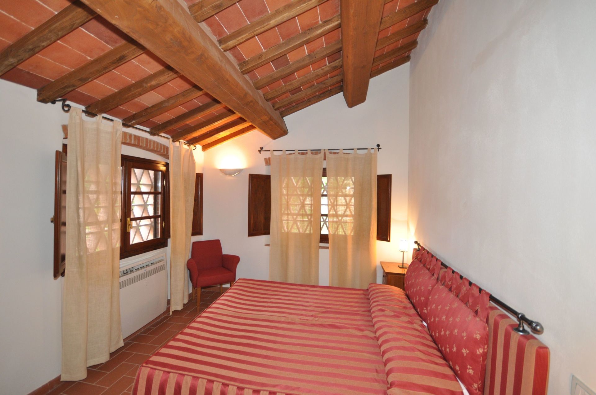1° Piano: 2 camere matrimoniali entrambe con bagno privato con doccia, camera con 2 letti singoli e bagno privato con doccia.
