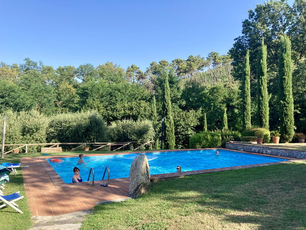 We loved the villa and garden, it provided a great space for our family. It was very comfortable and well equipped, the outside sitting areas were lovely and especially enjoyed evening meals round the ‘lazy Susan’ table, great idea, the swimming pool was a great hit with the little ones and because it was a particularly hot week we all spent lots of time cooling off in it. We didn’t travel far apart from the gelato shop in Vinci and enjoyed a very good lunch at the nearby golf course where they were very welcoming with 4 small children and our dog. The villa was easy to find and had good access to the main road. Thanks to Jacopo and his father as well as Antonella who cooked a lovely meal for us one evening. We will always remember our week at Il Leccio.